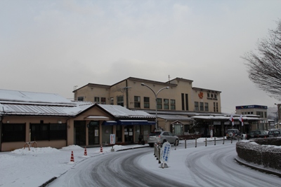 町は昨夜降った雪で真っ白、都会では見かけない大きさのつららが下がっていました。