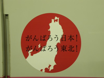 郡山に着く直前、車窓に流れた家のいくつかは屋根瓦が落ちたためか屋根にシートがかぶせられていました。震災からもう5カ月がたとうとしていましたが、震源からある程度離れている郡山でも場所によっては震災の爪痕がはっきりと残っているようです。