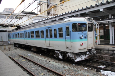 しばらくして折り返し直江津行き普通列車となる上り列車がこちらも数分遅れて到着。