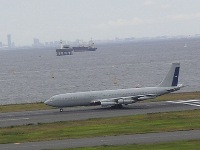 しばらくしたらフォローミーカーの後をついて沖止めスポットのほうに進んで行った。