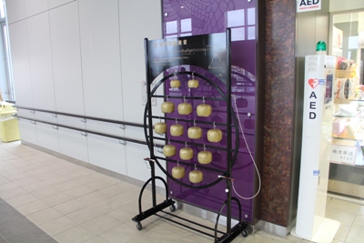 高岡駅の発車メロディ再現コーナー。叩いて鳴らすことができます。