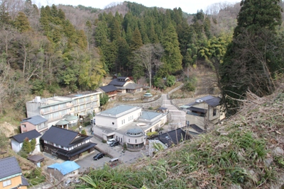 中央の建物は竹久夢二の記念館で、その奥に総湯があります。