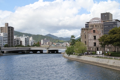原爆資料館と原爆ドームは川をはさんで向かい合うように建てられています。