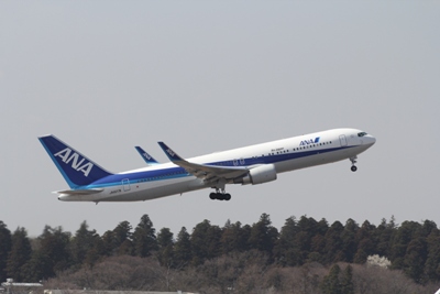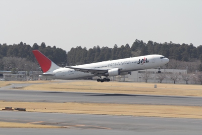 ウイングレットつき767。羽田ではまだあまり見かけることがありません。
