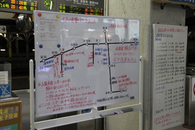 ちょうどラッシュ時のはずなのに2両編成の列車は比較的すいていました。