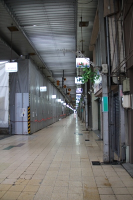 アーケード街は営業時間前なので人通りはありません。