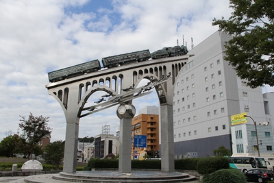 米子は「鉄道のまち」だそうで駅前にこんなモニュメントが。