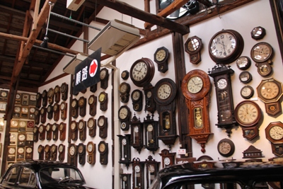 壁面には時計がぎっしり。ただし時刻はてんでバラバラ。