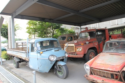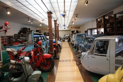 内部はご覧のようにクラシックカーや三輪自動車がずらり。