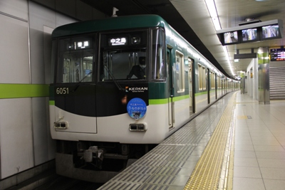 京阪自慢の5扉車。東京だと日比谷線、昔は京王にもいましたね。