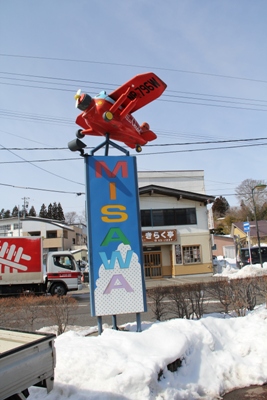 ロータリーの看板。上の飛行機のキャラクターはプロペラが回るということに今さら気付きました。