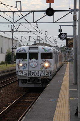 この車両、外の風景を楽しむという意味ではラッピングシートが邪魔になるので残念です。
