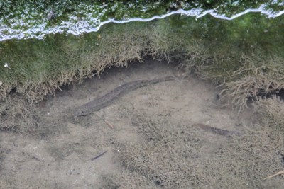 保護色とはまさにこのこと。一見して枯れ葉やゴミと区別がつかないドジョウ。