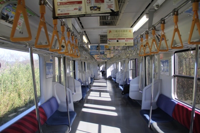 ガラ空きの車内。ロングシートに座っているとよく利用した京浜東北時代を思い出します。