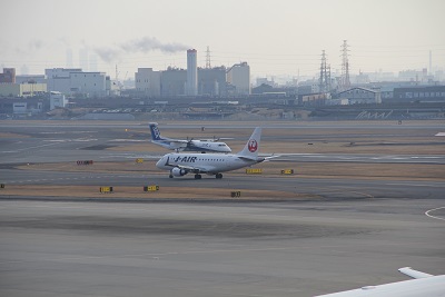 東京行きが離陸。大型機はこの便くらいで、あとはほとんどが小型機でした。