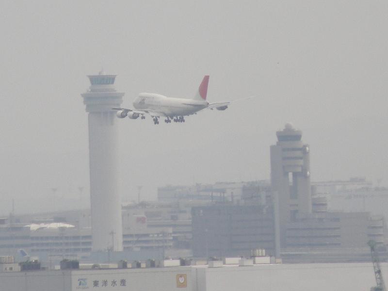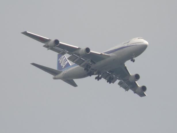 ガラス越しですが、旋回中の747-400D。
