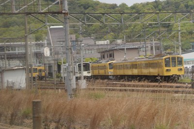 彦根の車庫。車体色だけ見るとまるで東京の西のどこかみたい。