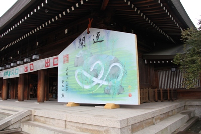 先ほどの橿原神宮同様、ここにも蛇の大絵馬。年の瀬を感じる一こまでした。