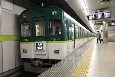 京阪自慢の5扉車。東京だと日比谷線、昔は京王にもいましたね。