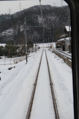 しらさぎを撮ってから30分と経っていませんが、入線5分前から突然雪が降り出したため困りました。