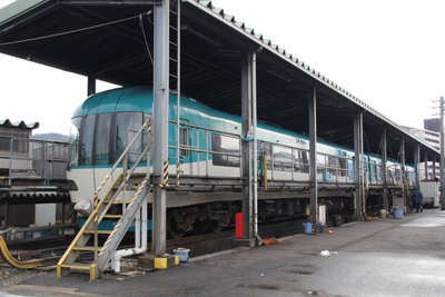 駅の横にある宮津線の車庫まで歩いて行ってみます。