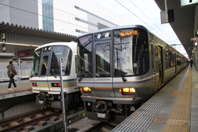 米原から新快速に乗り、京都や大阪、神戸などの大都市を通り抜け姫路へ。