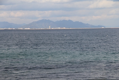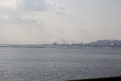 海をはさんで向かい側に工業地帯が見えてきます。