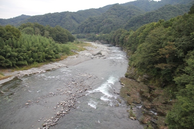 川を渡ります。天気は下り坂でしたが、川沿いのキャンプ場はそれなりに人が来ていました。